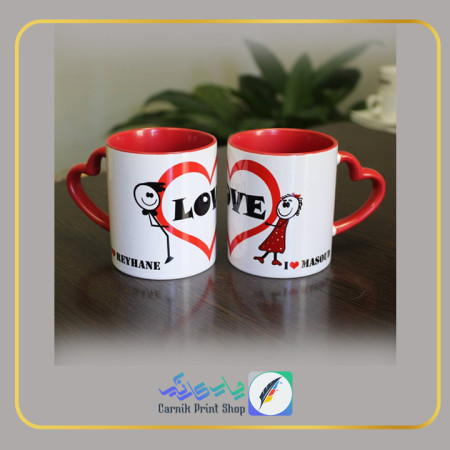 لیوان سرامیکی دسته قلبی رنگی داخل رنگی